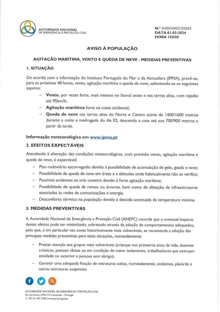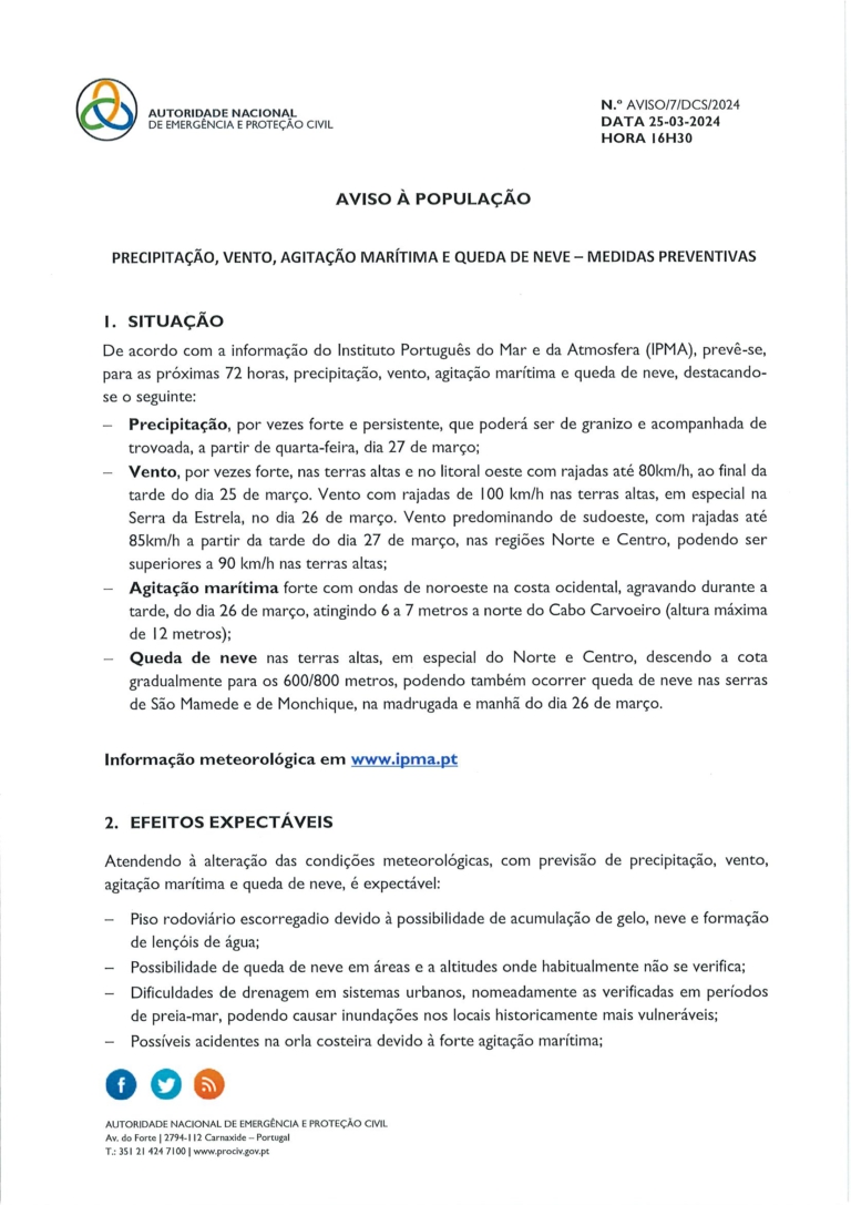 Aviso à População – Mau Tempo