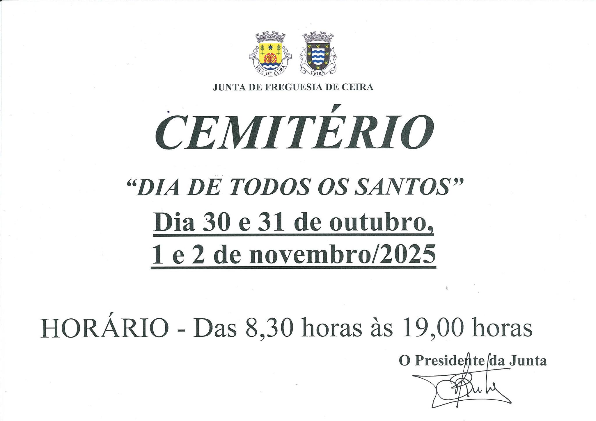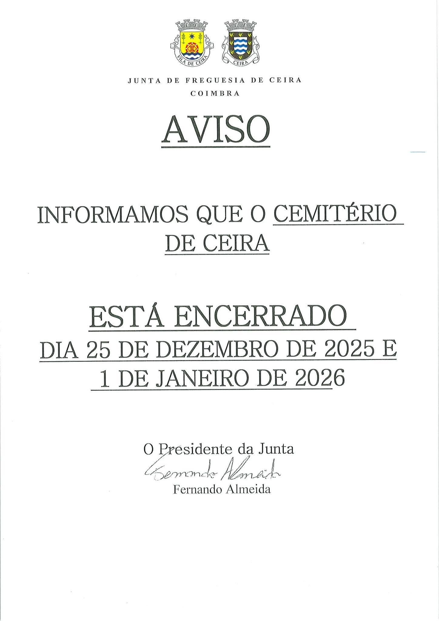 Aviso - Cemitério de Ceira