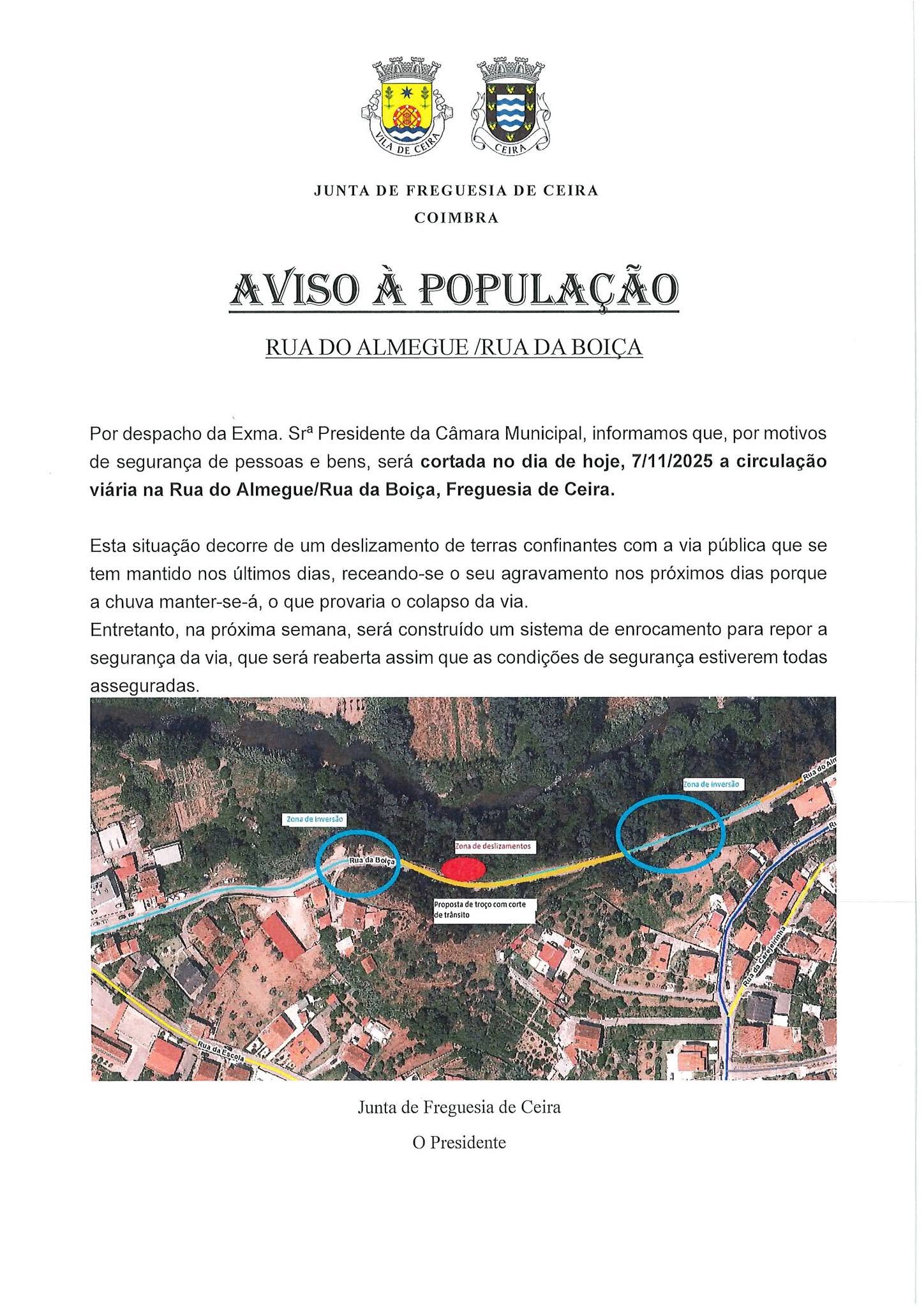 Aviso à População - Rua do Almegue / Rua da Boiça