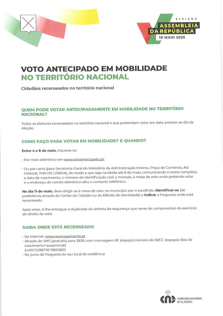 Voto Antecipado Em Mobilidade - No Território Nacional