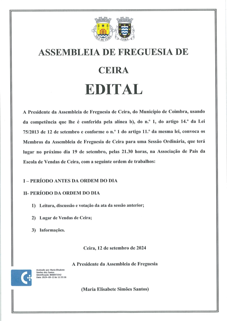 Assembleia de Freguesia de Ceira - 19 de Setembro 2024